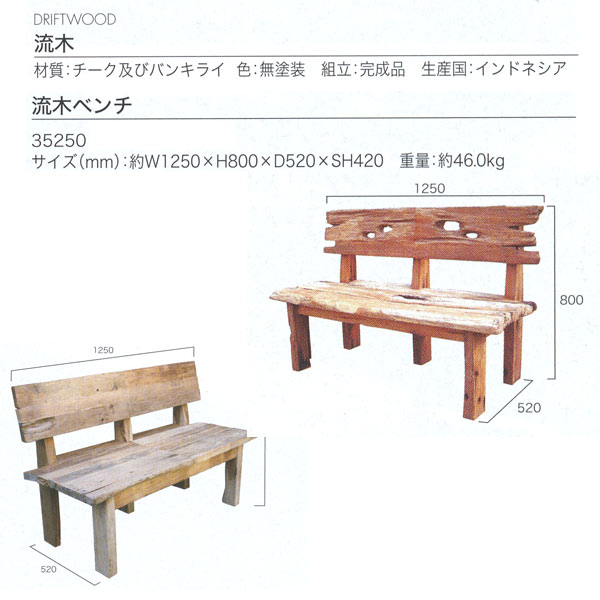ジャービス商事 DRIFTWOOD BENCH 流木ベンチ チーク/バンキライ 無塗装 35250 1台