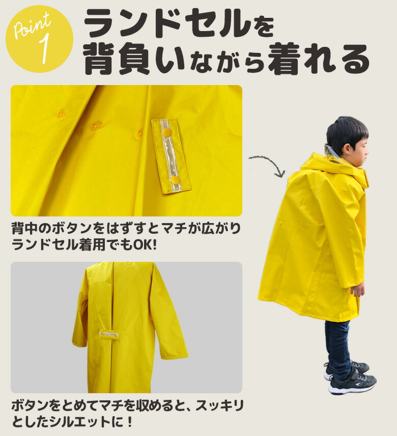 ランドセルを背負いながら着用できる子供用レインコートです。