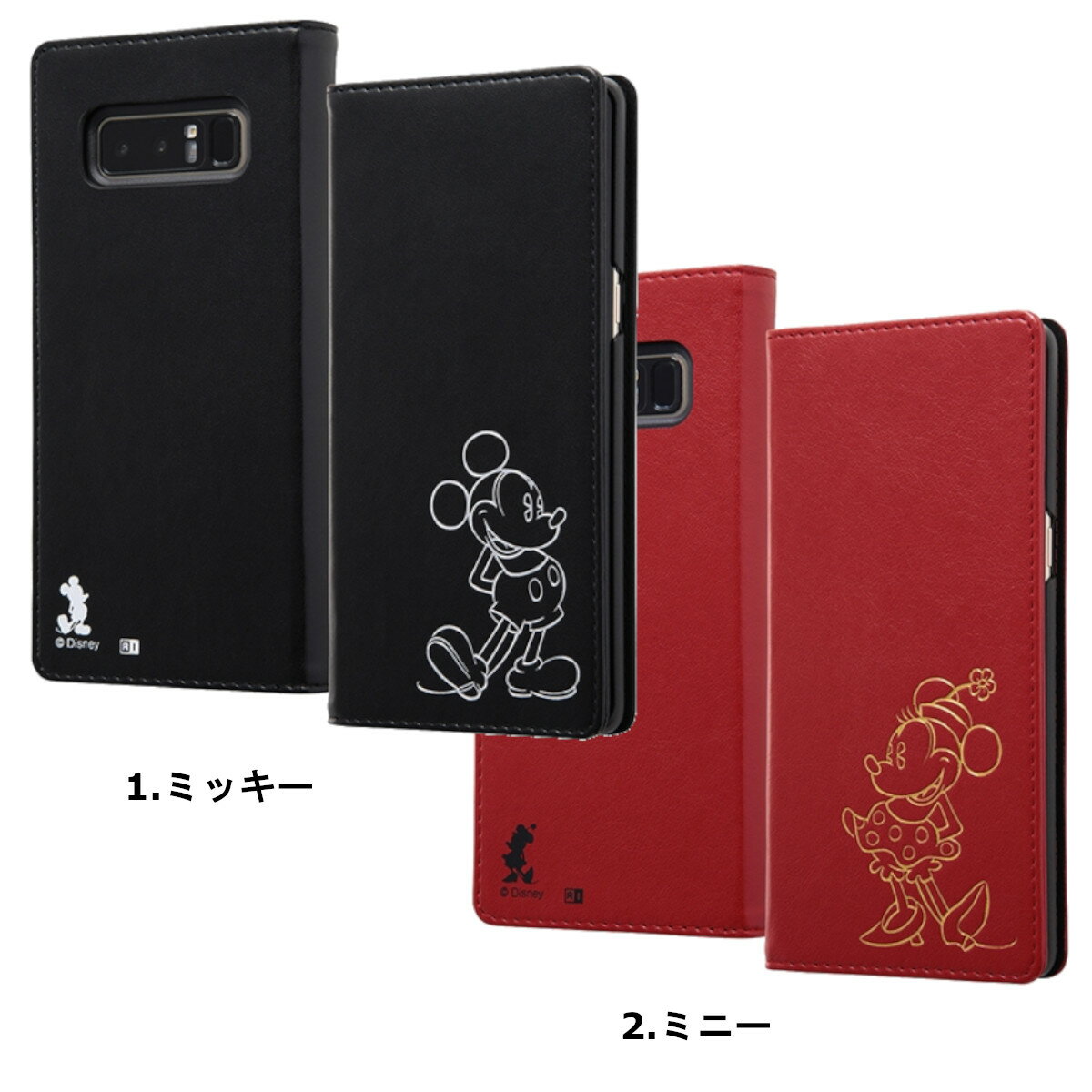 Galaxy Note8 国内メーカー品 ディズニーキャラクター/手帳型ケース ホットスタンプ ワンポイント ICカードポケット付 指紋認証対応 可愛い 携帯ケース おしゃれ かわいいアンドロイド docomo SC-01K au SCV37