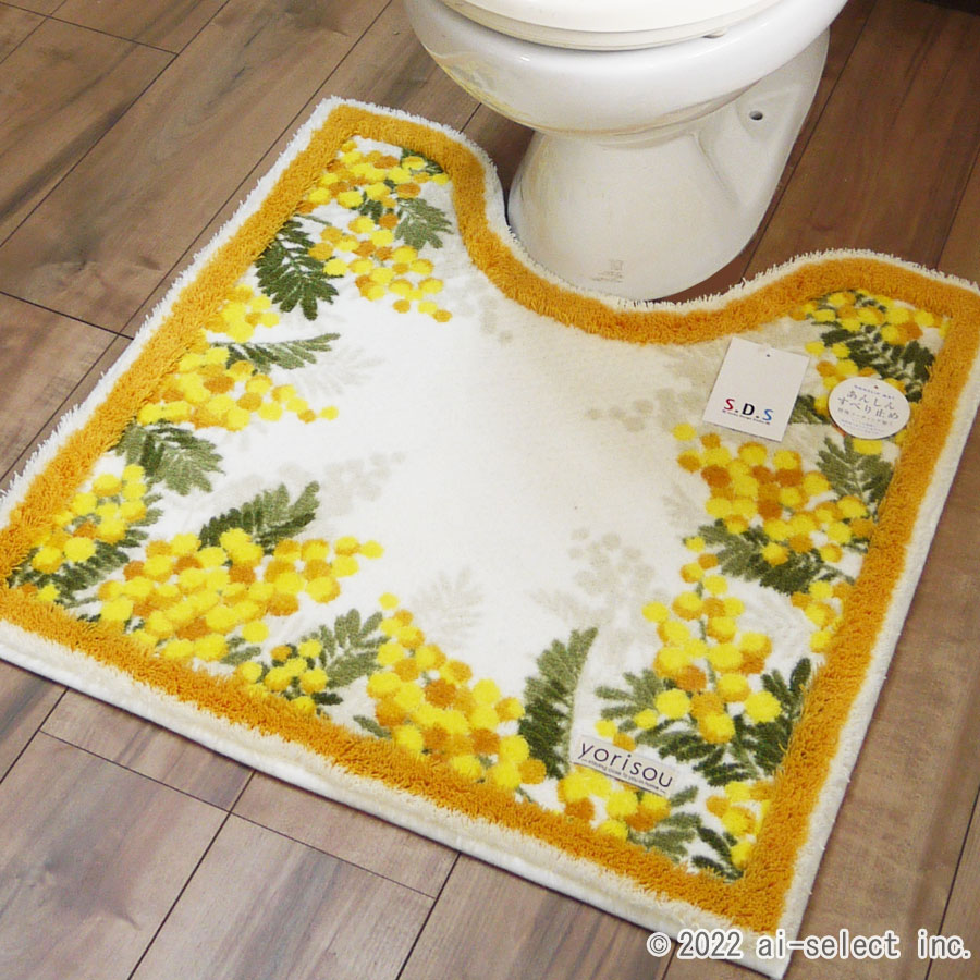 トイレマット 5点セット 対応機種多数 吸着タイプ マルチフタカバー ミモザ 黄色い小花 元気が出るカラー イエロー 淡い黄色 おしゃれ 立体感あるデザイン